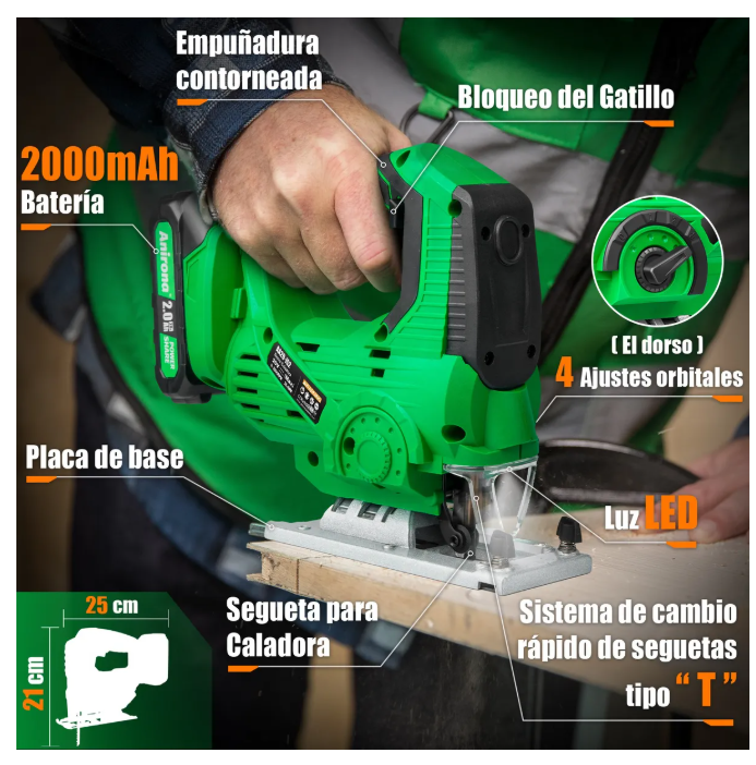 Sierra Caladora Inalámbrica Con 2 Baterías 2.0ah Anirona Pro AA20-JS2