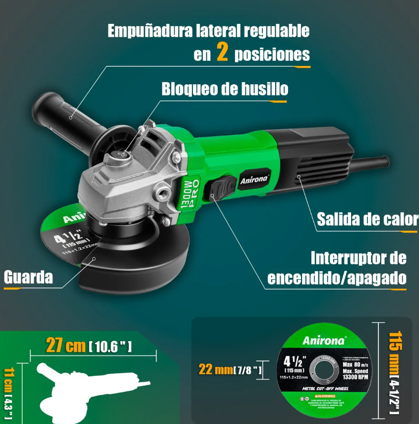 Esmeriladora Angular 1300w Anirona Ag1300