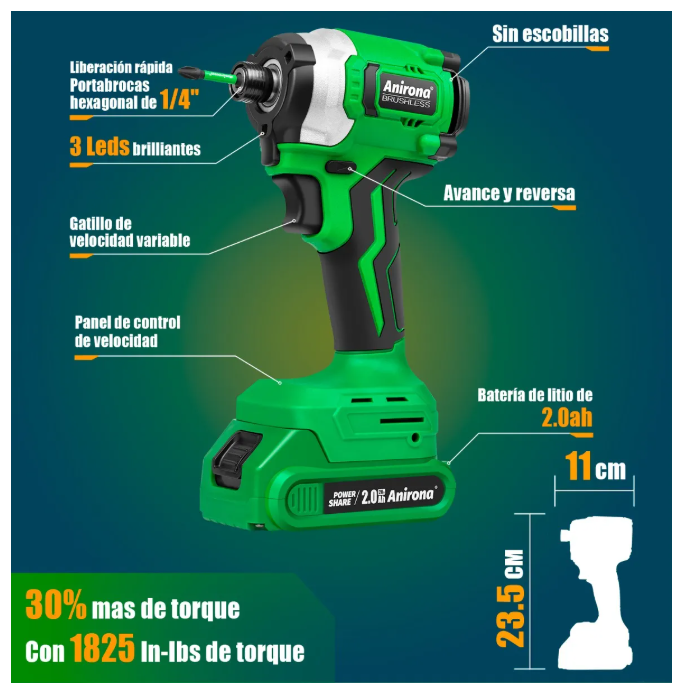 Atornillador De Impacto Inalámbrico 20v Anirona Promax 2 baterias 2108PM