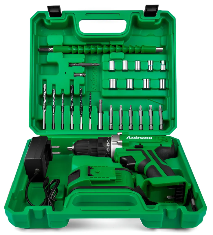 Taladro atornillador inalámbrico de 10mm Anirona AA201530 20V + 1 batería de 1.5Ah + accesorios con maletín