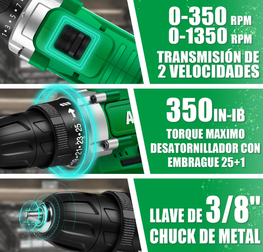 Taladro Percutor Atornillador Inalámbrico 21V de 1/2"