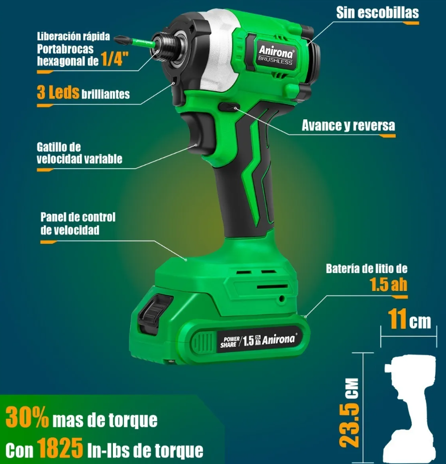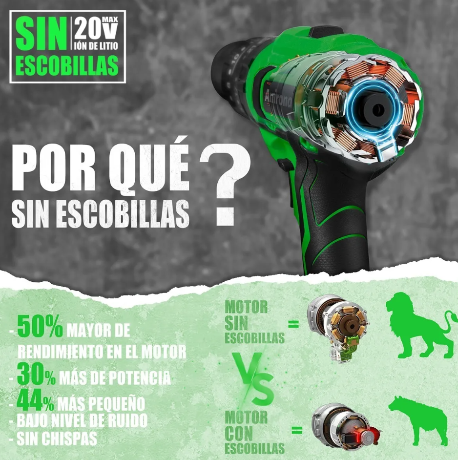 * Además de que nuestro Taladro ofrece un mayor rendimiento, su uso es más seguro, haciéndolo la mejor opción, su motor con tecnología Brushless hace que tenga mayor potencia y no genere chispas durante su uso.