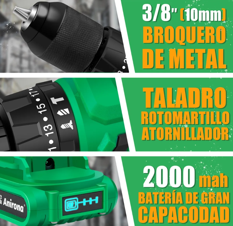 Es un orgullo presentarte el Taladro sin escobillas, Atornillador, Rotomartillo, Recargable.