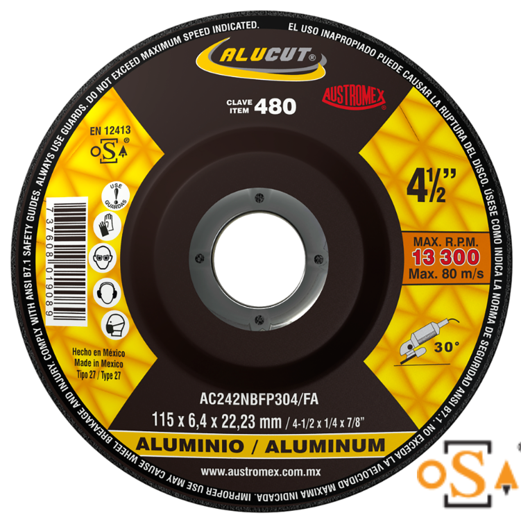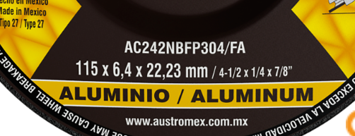 Disco abrasivo para desbaste de aluminio y metales no ferrosos de 115mm AUSTROMEX 480