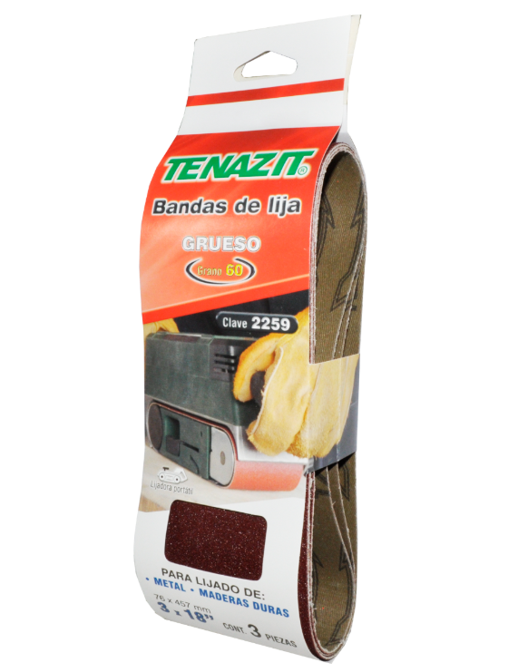 Paquete de bandas de lija de óxido de aluminio, grano 60 de 76 x 457 mm AUSTROMEX 2259