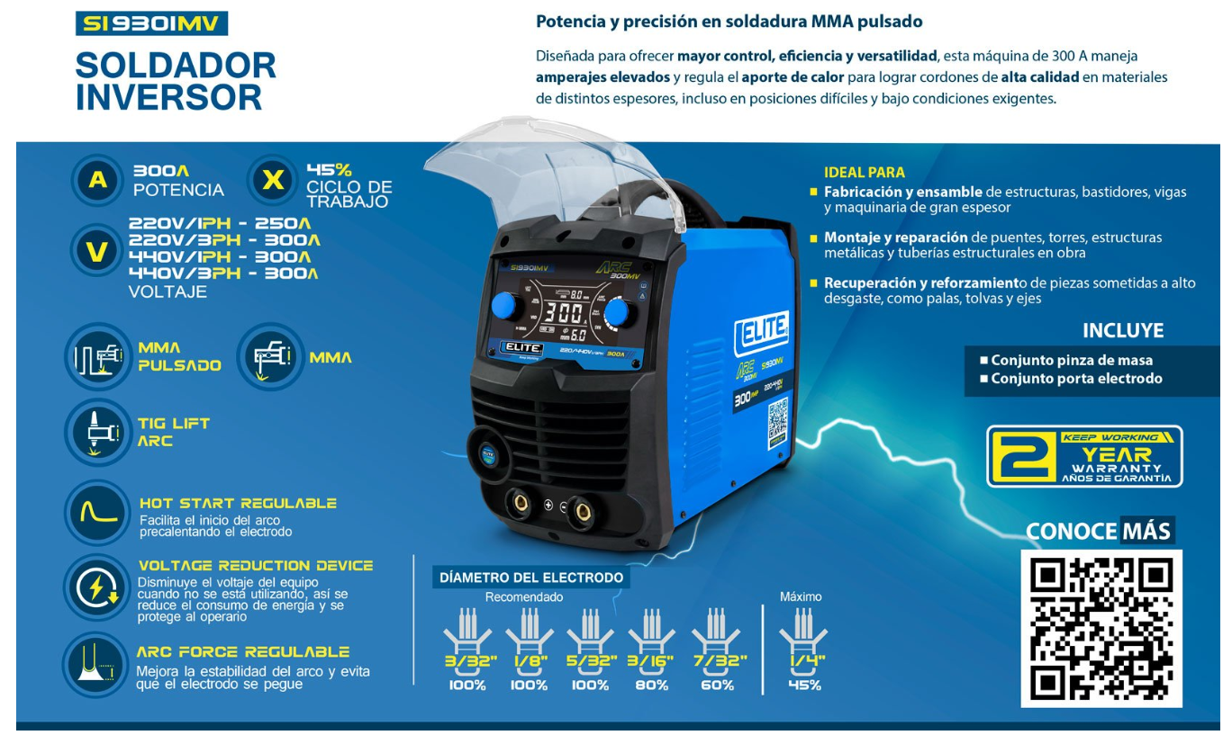 - Soldador inversor profesional especialista SI9301MV ARC 300MV.