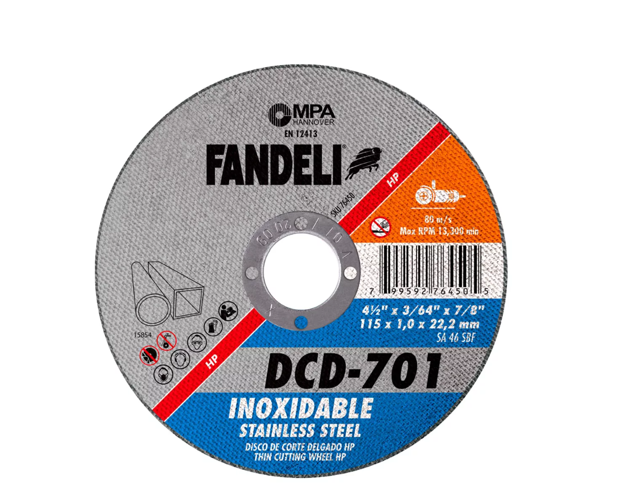 Disco corte acero inoxidable 41/2x1x7/8 HP DCD 701 Fandeli