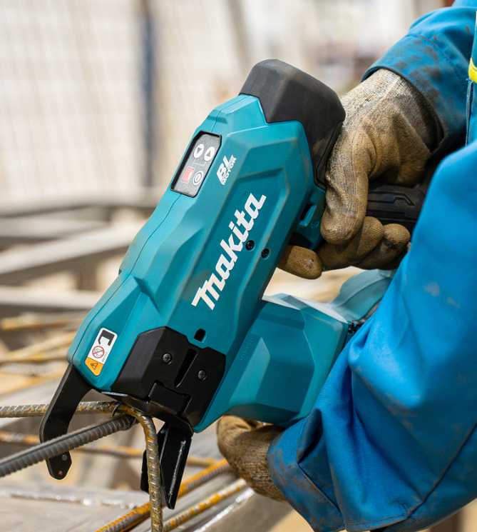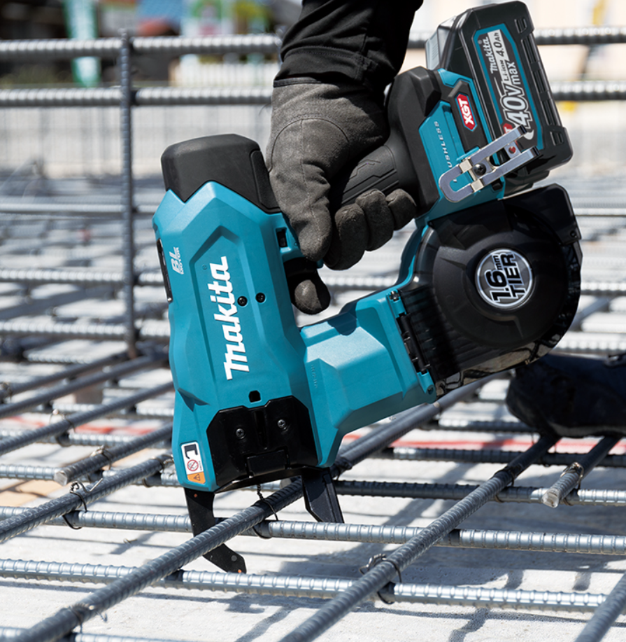La herramienta inalámbrica Makita TR001G 40Vmax XGT está diseñada para atar varillas corrugadas de Ø10 a Ø35 mm de forma más rápida, segura y precisa. Los dos motores sin escobillas y el cable de 1,6 mm garantizan una potencia constante y unas ataduras extremadamente estables, reduciendo así los tiempos de procesamiento. El mecanismo de retracción optimiza el uso del cable, a la vez que aumenta la fuerza de sujeción y garantiza una mayor eficiencia que los sistemas tradicionales. Con su tecnología avanzada, la TR001G ofrece fiabilidad, comodidad y rendimiento profesional en el lugar de trabajo.