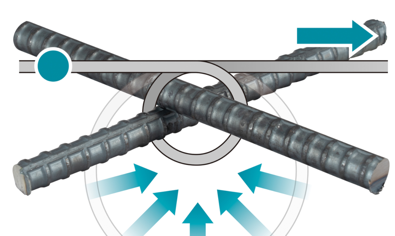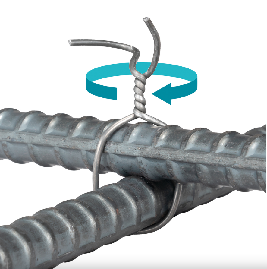Equipada con un mecanismo de retracción del alambre, la herramienta retrae el alambre mientras sujeta la punta, permitiendo atar las varillas corrugadas de forma firme y segura. - Capaz de unir una amplia gama de tamaños de varillas de refuerzo, desde diámetros pequeños a grandes.