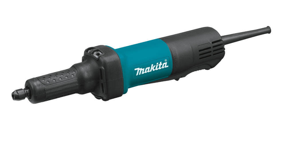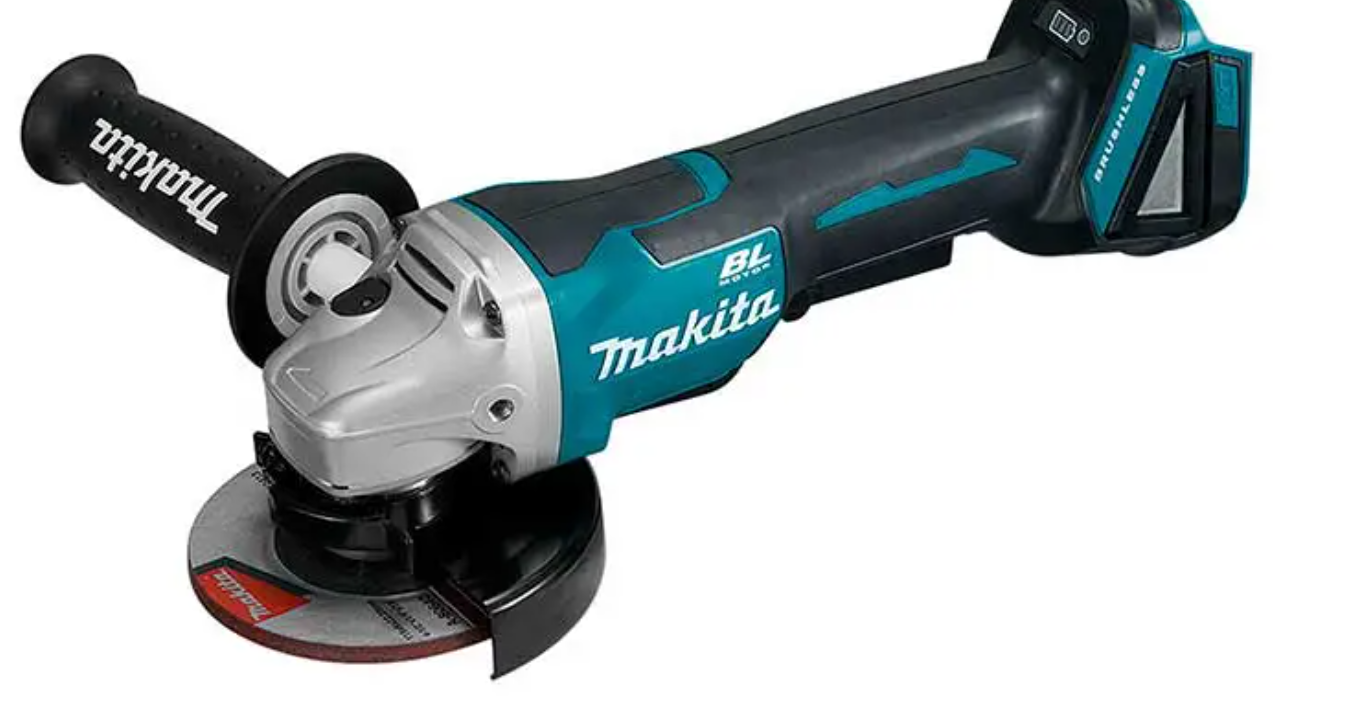 Miniesmeriladora 18V lxt Makita con interruptor de palanca, el usuario siempre tiene que tener la mano en el interruptor.