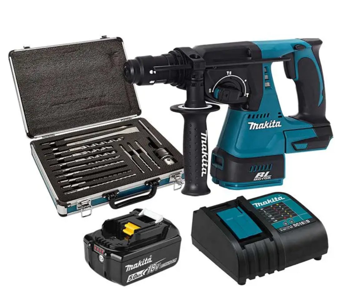 Rotomartillo SDS Plus Makita, listo para trabajar, excelente para trabajos de construcción, perforaciones sobre concreto, madera, metal.