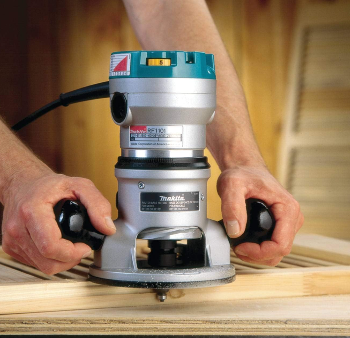 La Buriladora de 2-1/4 HP (modelo RF1101) de Makita combina potencia con conveniencia y características de fácil uso para rendimiento mejorado. La RF1101 tiene un potente motor con suave arranque para inicios tranquilos y control de velocidad electrónico que mantienen velocidad constante bajo carga. El control de velocidad variable permite al usuario igualar la velocidad a la aplicación, con 8,000 - 24,000 RPM. La sub-base acepta las guías de plantillas estándar y la tapa plana durable proporciona estabilidad cuando se cambia la broca. El RF1101 tiene ingeniería totalmente a base de baleros para mayor duración y acepta brocas con entrada de 1/2" y 1/4".