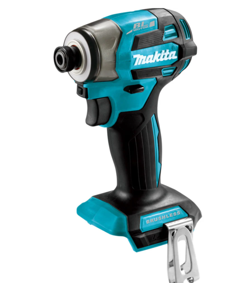 El DTD173 de Makita es un atornillador de impacto muy compacto. La máquina, equipada con un motor sin escobillas de carbono, tiene un par máximo de hasta 180 Nm. La máquina tiene un panel de selección fácil de usar en la parte trasera, que ofrece cuatro ajustes diferentes tanto para la intensidad del golpe como para el ajuste de la velocidad. Los ajustes de la fuerza de impacto también pueden modificarse cómodamente desde el botón de función situado encima del interruptor de funcionamiento de la máquina.También se pueden seleccionar varias funciones de asistencia desde el panel de selección. Para tornillos de broca, un ajuste en el que la máquina gira primero a toda velocidad. Cuando el tornillo está a punto de penetrar en el metal, la máquina reconoce este pico de resistencia y ajusta la velocidad de rotación a un régimen más lento. Esto hace que sea mucho más fácil controlar el apriete final del tornillo. Existen dos ajustes diferentes para los tornillos de broca en función de la resistencia de los distintos materiales.