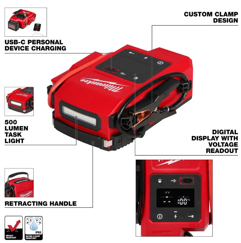Nuestro arrancador M18™ HOTSHOT™ es una solución automotriz nueva en el mundo que redefine la confiabilidad y la facilidad de operación en la categoría de arrancadores. Nuestro arrancador está SIEMPRE LISTO PARA ARRANCAR, sin necesidad de mantenimiento ni precarga. Esta tecnología patentada nueva en el mundo utiliza condensadores internos y, con cualquier batería M18, permite que nuestro arrancador esté preparado para arrancar en menos de 70 segundos. Nuestro arrancador, que ofrece un VERDADERO RENDIMIENTO EN TODO TIPO DE CLIMA, funciona constantemente de -4 °F a 122 °F. Los condensadores internos tienen una capacidad nominal de hasta 500,000 ciclos, lo que brinda UNA VIDA ÚTIL MÁS PROLONGADA y una confiabilidad inigualable. El M18™ HOTSHOT™ proporciona hasta 2000 amperios máximos, lo que le permite arrancar motores de gasolina de hasta 8,1 L y diésel de hasta 3,0 L. Una batería M18™ REDLITHIUM™ XC5.0 ofrece hasta 70 arranques con una sola carga. Nuestro diseño de pinzas personalizado garantiza un acceso adecuado a los terminales de la batería, lo que permite una mejor conexión. Nuestro arrancador M18™ HOTSHOT™ es una solución nueva en el mundo que ofrece una experiencia siempre lista, un verdadero rendimiento y una vida útil más prolongada.