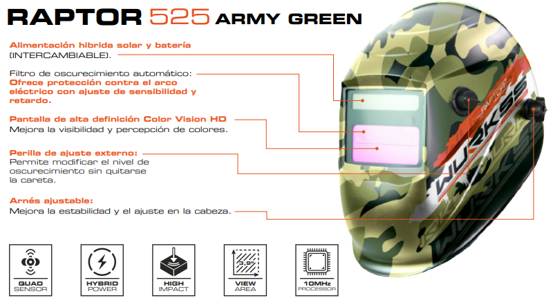 Careta electrónica 4 Sensores RAPTOR 525 ARMY GREEN