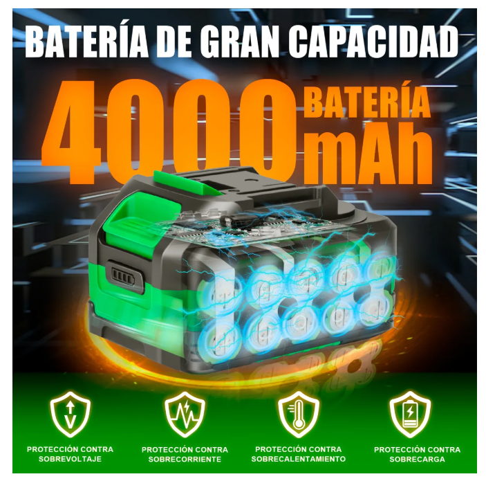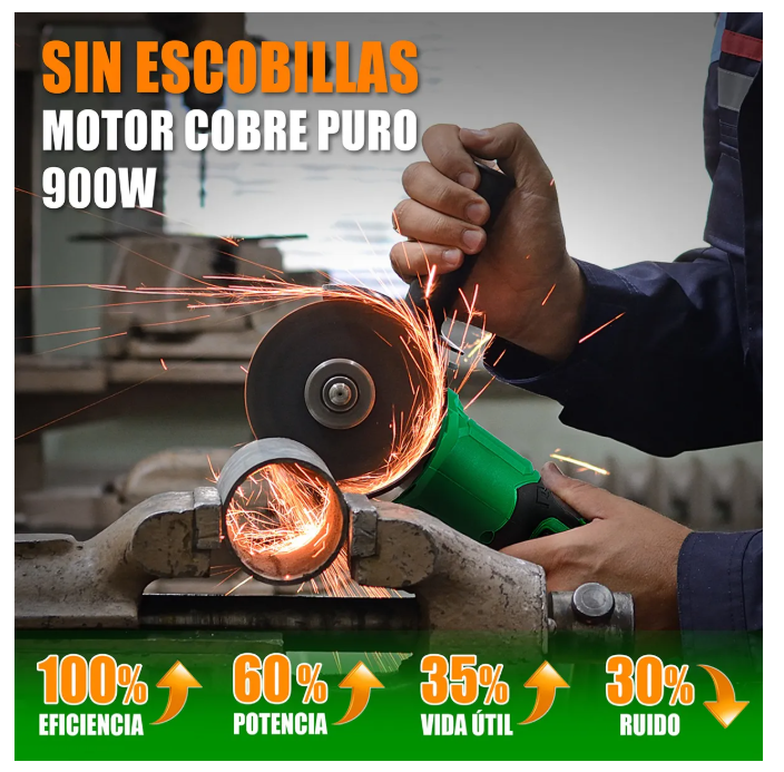Esmeriladora Angular Sin Carbones Inalámbrica Anirona Con 4Ah Batería
