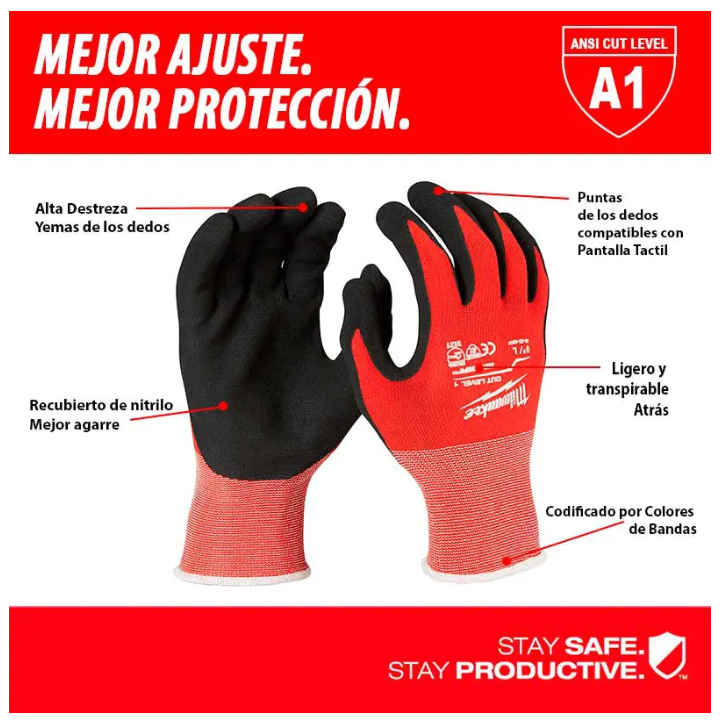 Los guantes están hechos de una mezcla de nailon y lycra para brindar comodidad durante todo el día y eliminar la humedad, y también cuentan con la punta de los dedos de alta destreza para maximizar el control al manipular objetos pequeños.