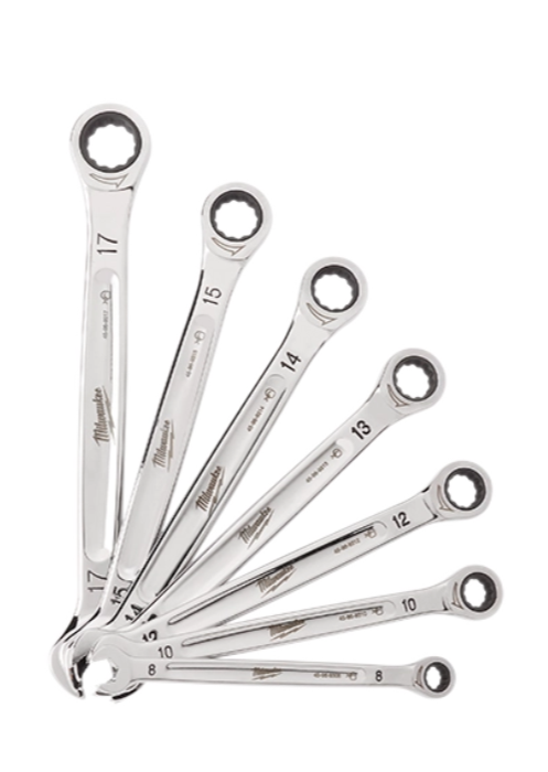 Nuestras llaves combinadas de trinquete cuentan con una oscilación de arco en 2.5°, que permite a nuestros usuarios trabajar en forma rápida y eficiente en espacios estrechos. Nuestras llaves para mecánico cuentan con trinquetes duraderos de doble apilado en el mecanismo de trinquete y ofrecen la vida útil más prolongada para un trinquete y un mayor acceso con 144 posiciones de trinquete. El mango de boca abierta MAX BITE™ mejora la sujeción de la llave de trinquete en tuercas y pernos y ofrece un 25 % más de torque que las llaves lisas. Cada una de las llaves combinadas cuenta con un cómodo diseño de mango de perfil en doble T para una mejor ergonomía. Nuestro juego de llaves combinadas de trinquete cuenta con indicadores de tamaño rellenos con tinta para una fácil identificación de los tamaños, así como una rápida distinción entre los juegos SAE y métricos. Este juego de llaves combinadas de trinquete métricas de 7 piezas viene en una bandeja de almacenamiento portátil con bloqueo, lo que ofrece organización tanto dentro como fuera de lugar de trabajo. Respaldamos nuestros productos y ofrecemos una garantía de por vida para todos nuestros juegos combinados de llaves de trinquete.
