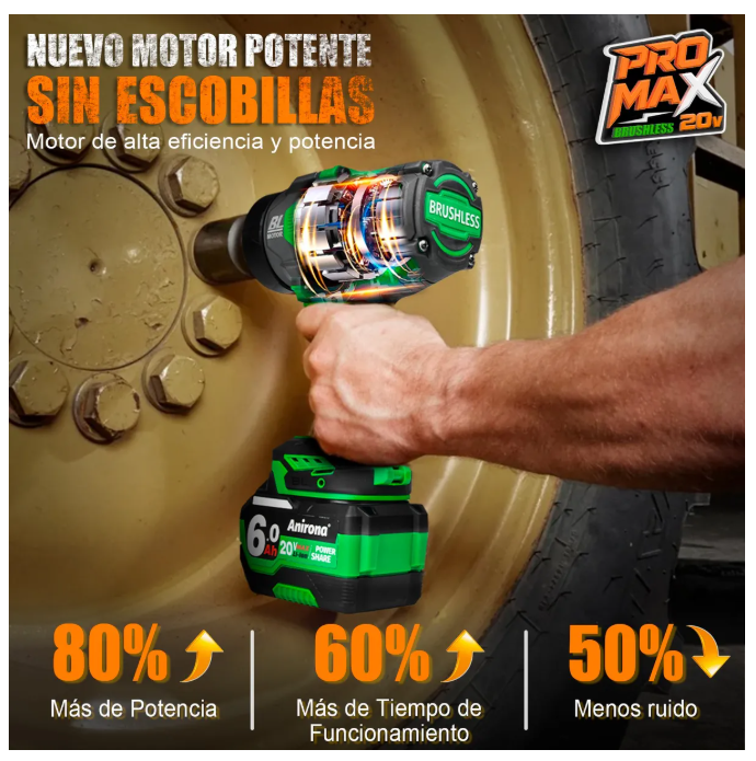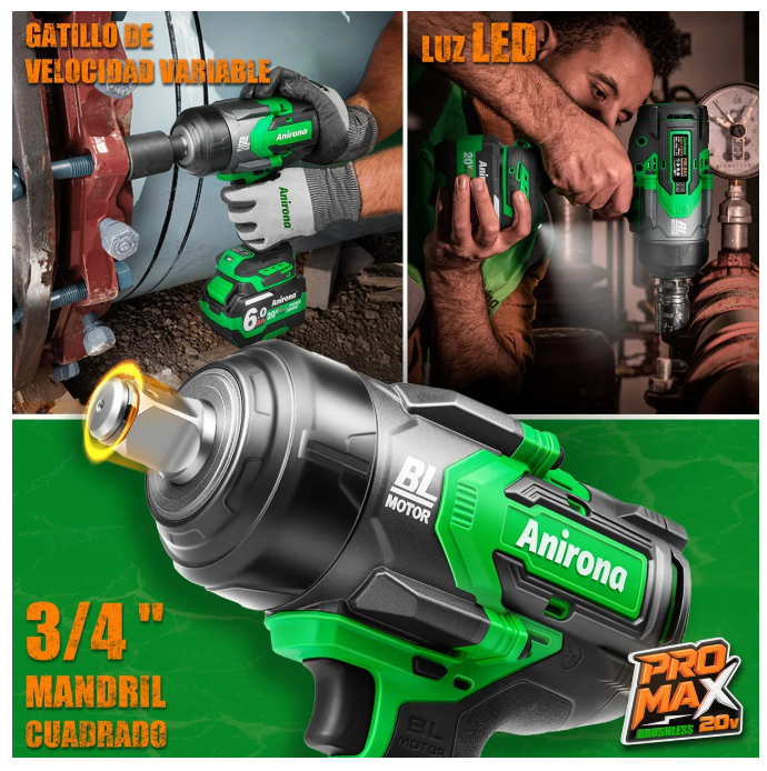 Llave De Impacto Sin escobillas Inalámbrico Pro Max Anirona 6.0Ah Batería Uso Industrial