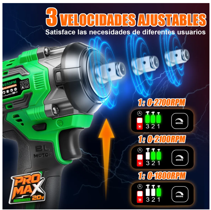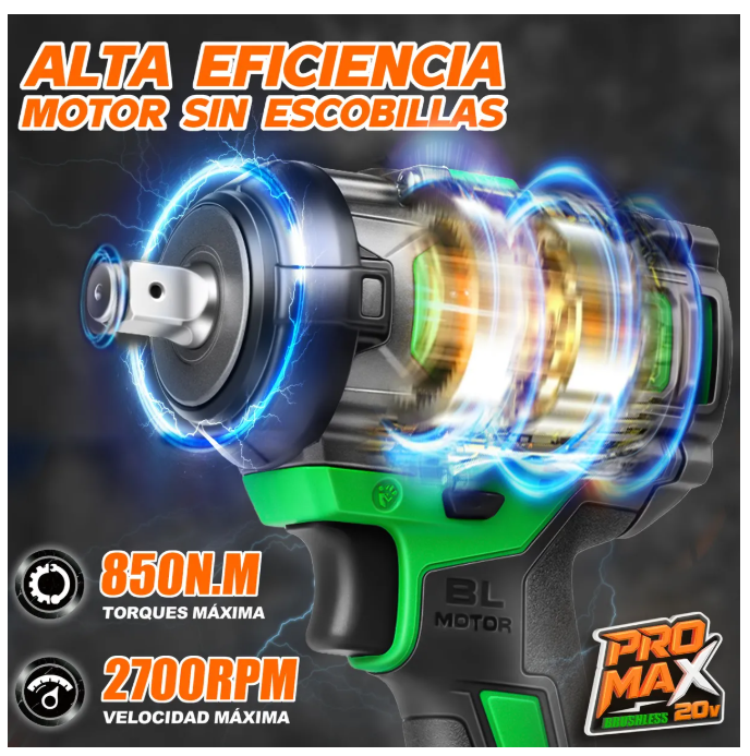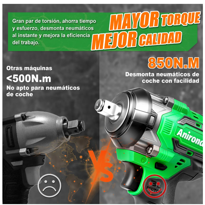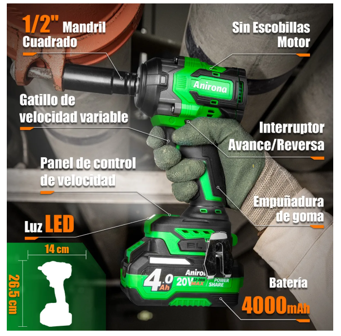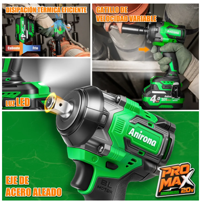 Llave De Impacto Inalámbrico Anirona 850nm 1 Baterías 4.0 Ah W850PM-1