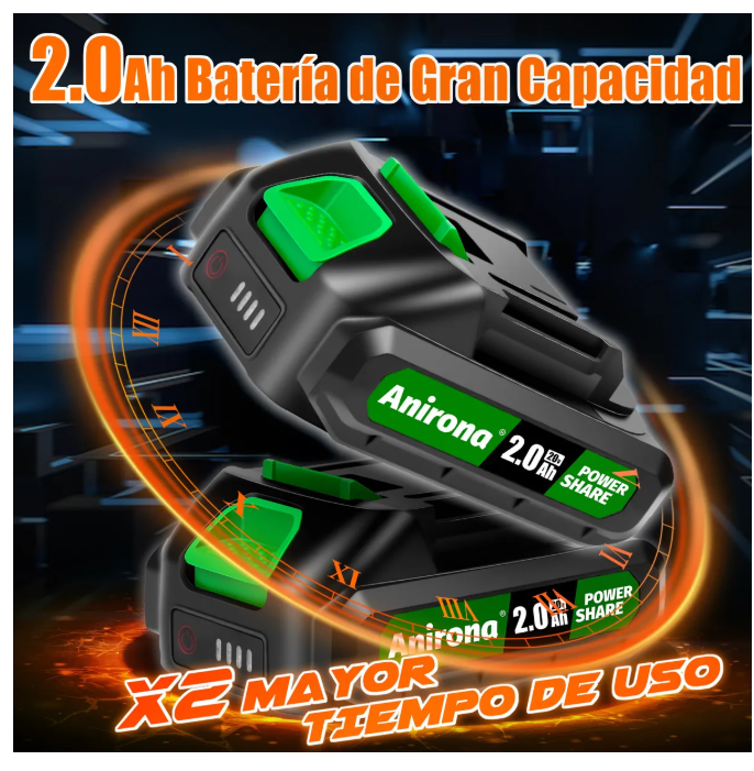 -Batería doble-: Incluye dos baterías de litio de 2000 mAh para mayor duración y trabajo continuo sin interrupciones.