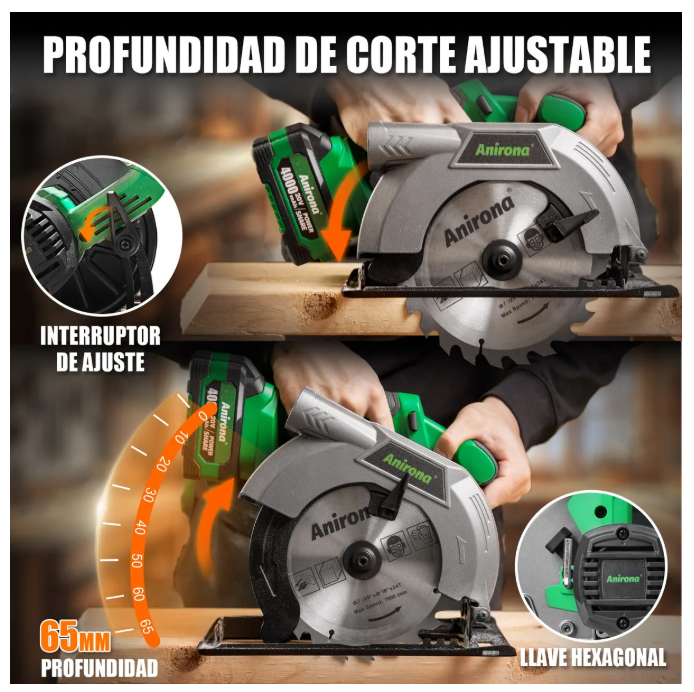 Sierra Circular Sin Carbones Inalámbrico 7-1/4 Anirona 1 Batería 4.0ah A40CS185
