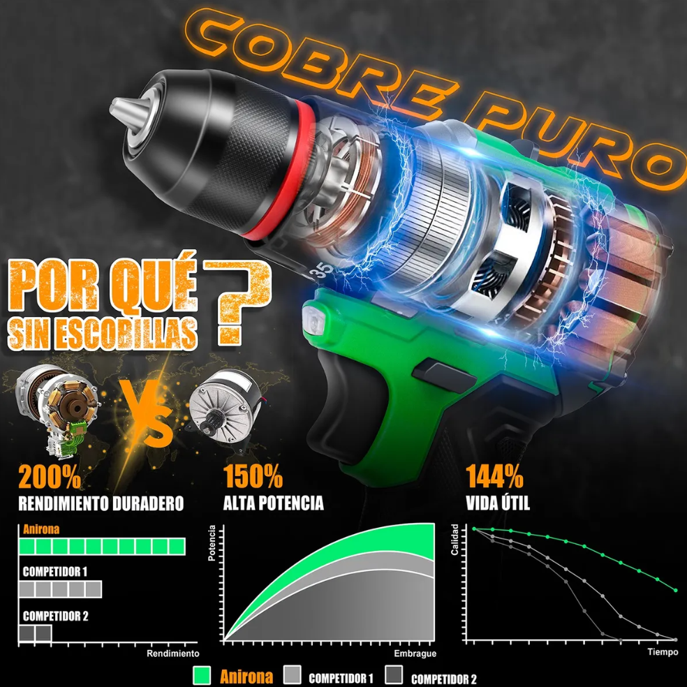 El Anirona AA20-T10 es tu aliado ideal para perforar madera, metal, concreto y más, gracias a su potente motor sin escobillas, 2 baterías de larga duración y diseño ergonómico. Ideal para profesionales, carpinteros, entusiastas del bricolaje y tareas del hogar.