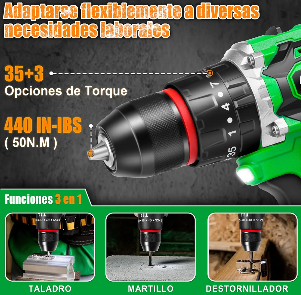 Taladro Atornillador Inalámbrico Sin Escobillas 21V